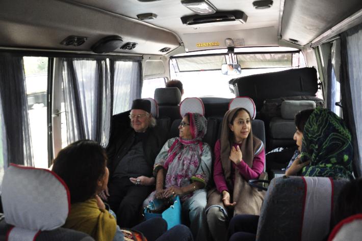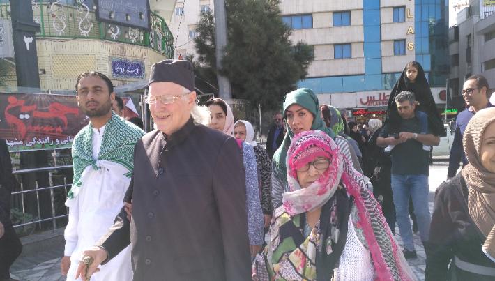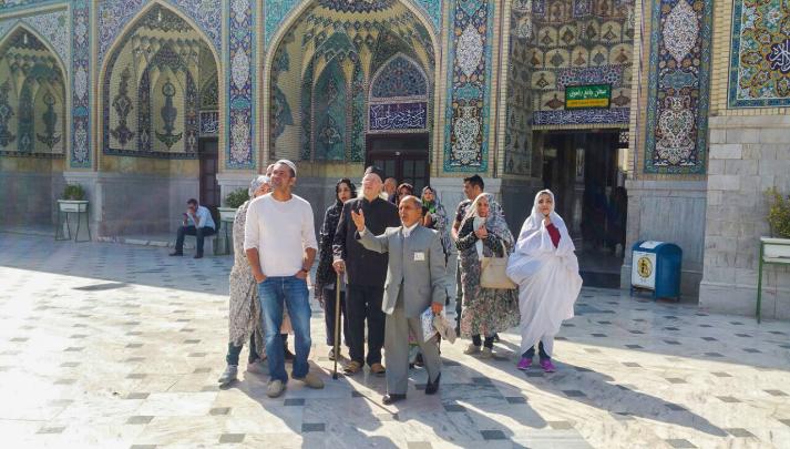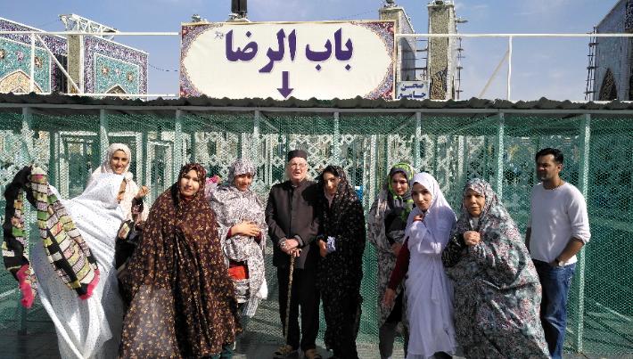 | Being guided round the shrine complex by the official guide. For Ladies complete covering was required. |